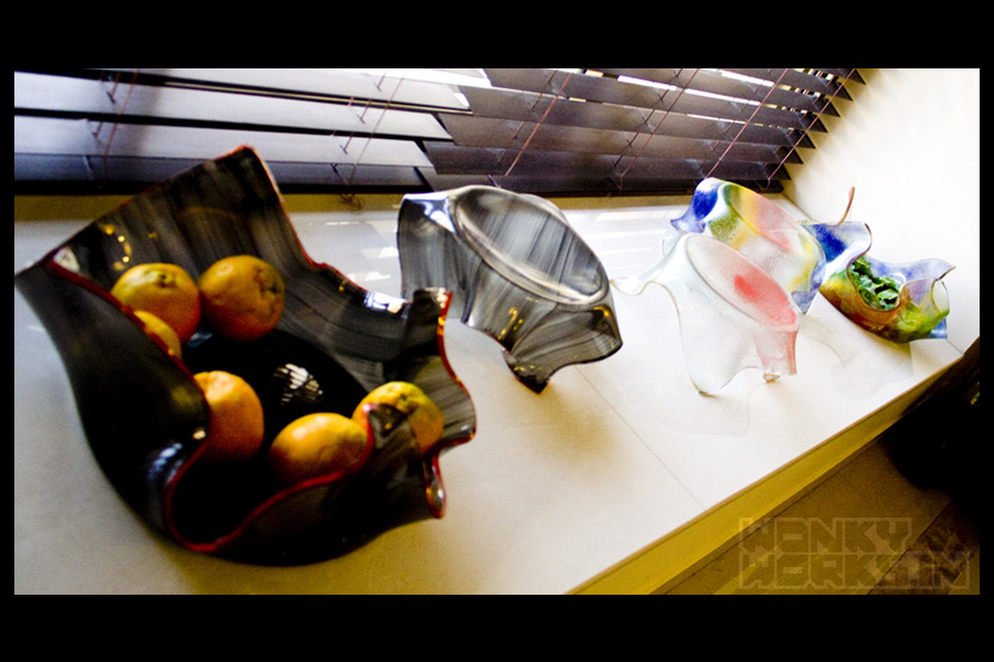 Kiln-formed glass, glass enamels.